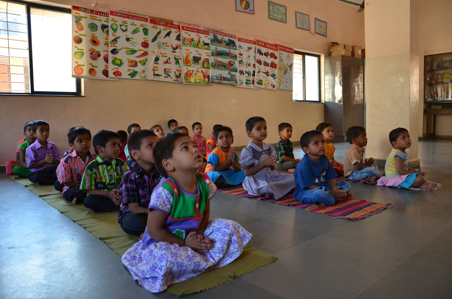 Pre-primary children attend a nursery Mukund Balmandir on Adharashram premises. Primary students go to Mohini Devi Rungta Prathamik Vidyamandir and secondary students go to Pushpavati Roongta Kanya Vidyalaya for their regular studies. Currently around 75 children are attending school regularly.